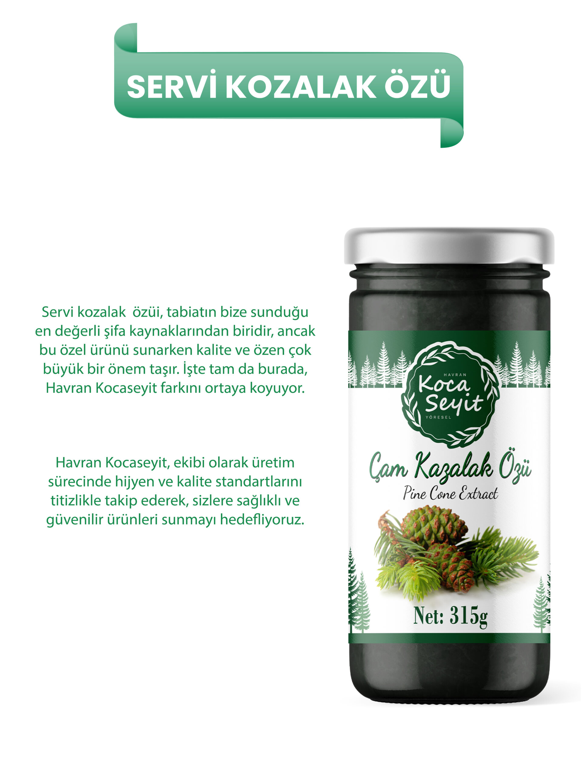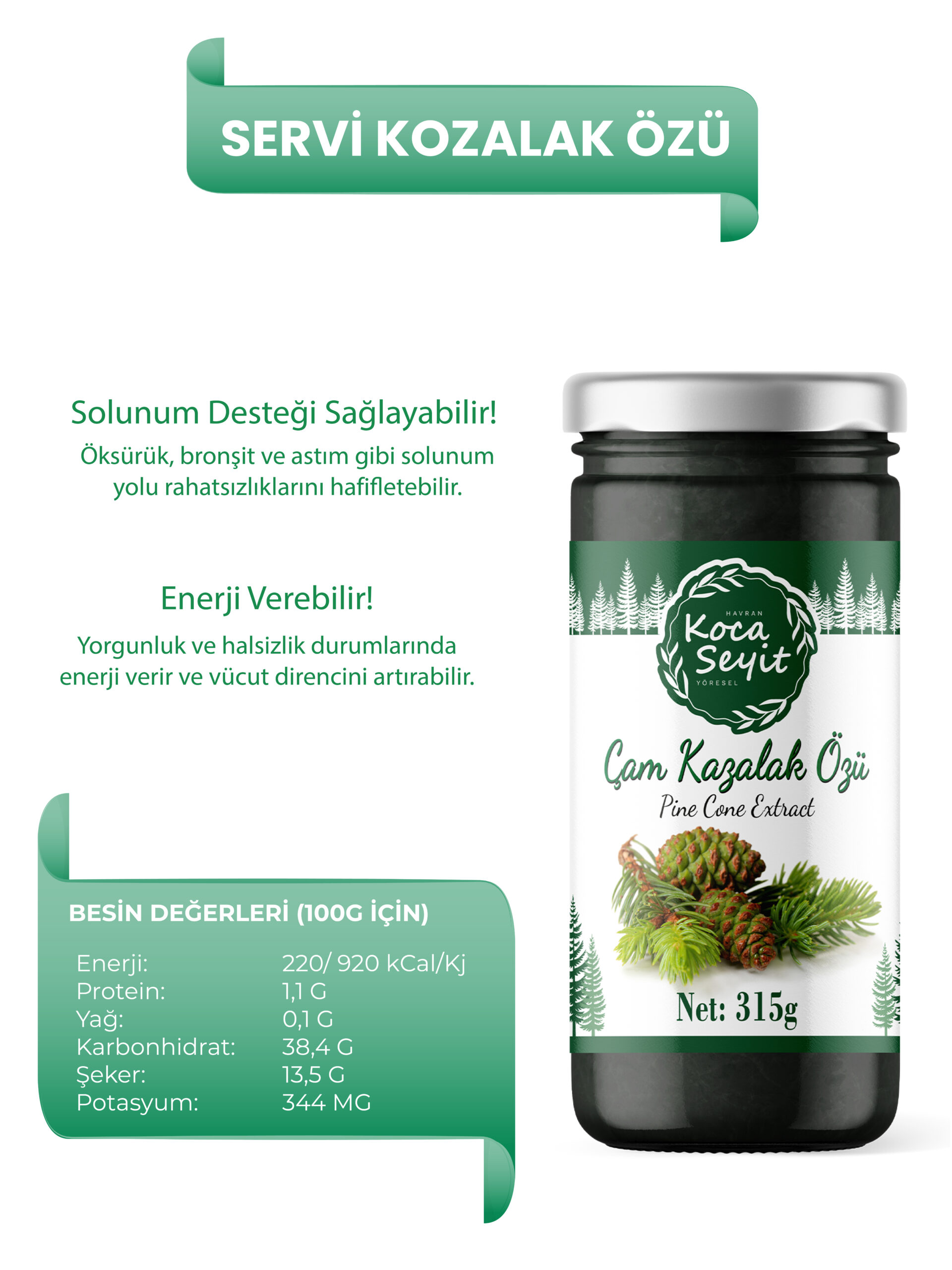 Kocaseyit® Çam Kozalak Özü, yüksek besleyici değerlere sahip bir içeriğe sahiptir. Her bir damlası, çam kozalaklarının özlerini içerir ve vücudun ihtiyaç duyduğu önemli besin öğelerini sağlar.