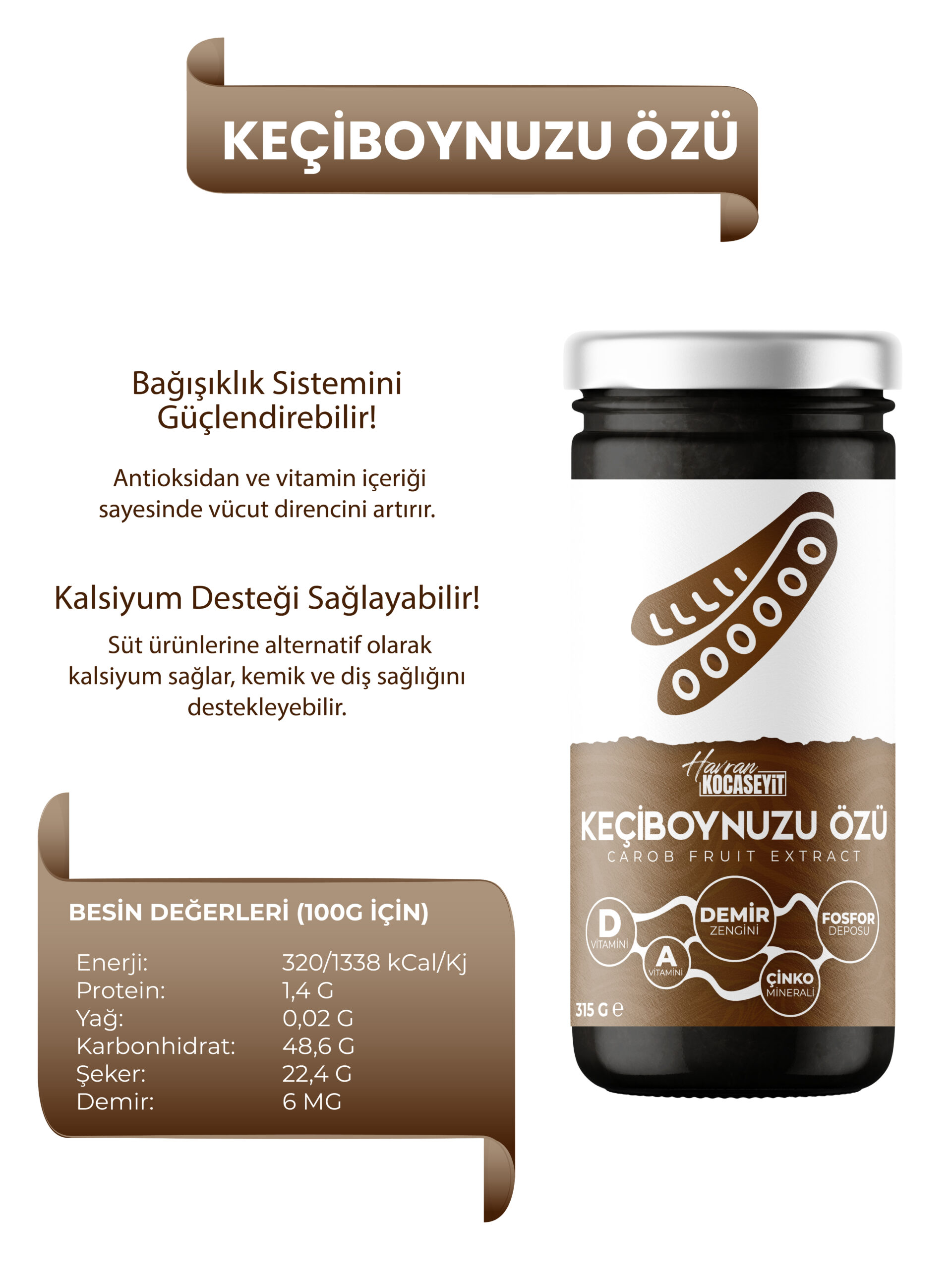 Kocaseyit® Keçiboynuzu Özü, özenle işlenmiş keçiboynuzu meyvelerinin özlerinden elde edilen bir lezzet kaynağıdır. Bu ürün, içeriğindeki vitamin ve minerallerle dikkat çeker.