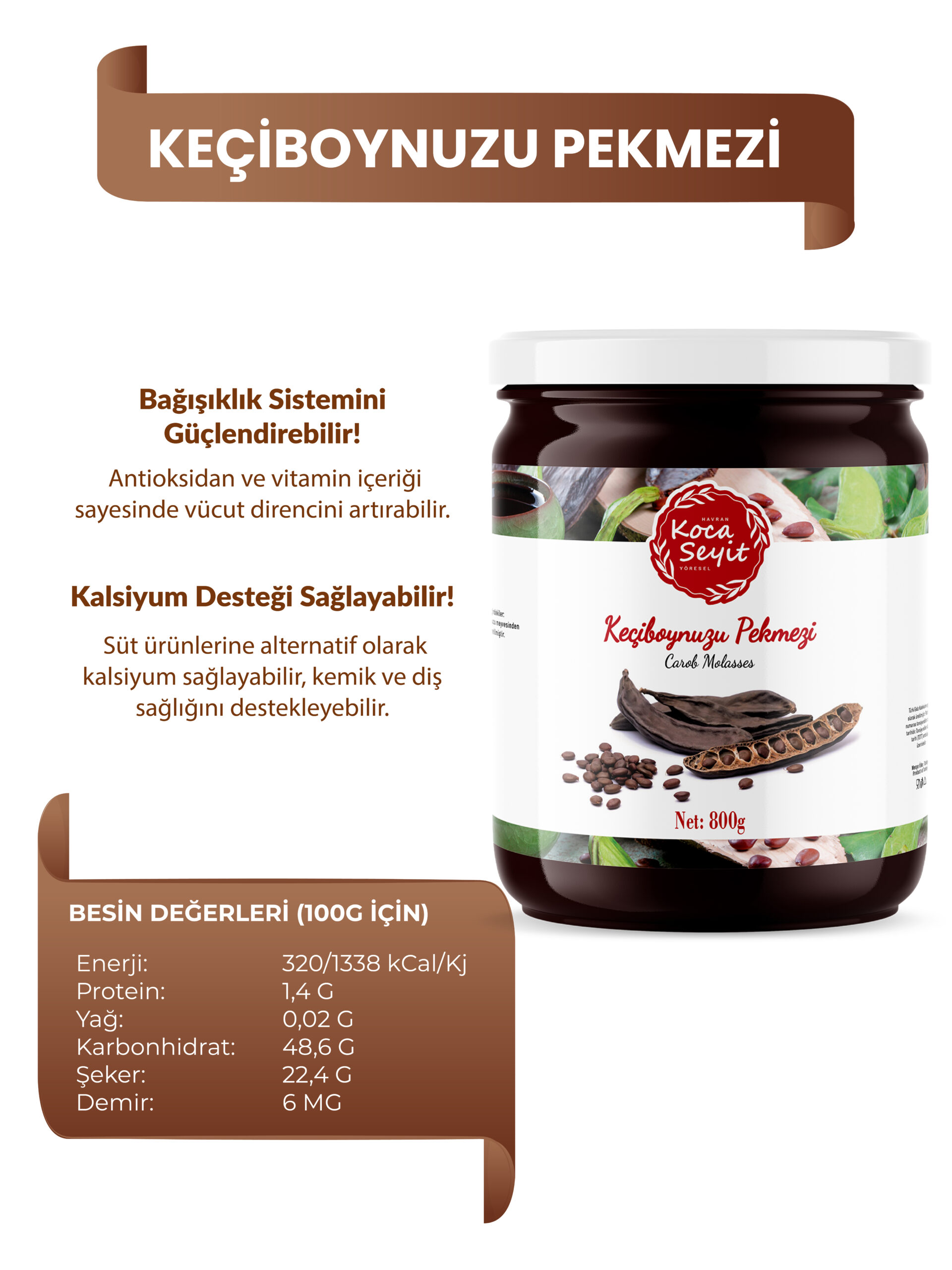 Kocaseyit® Keçiboynuzu Pekmezi, yüksek besleyici değerlere sahip bir içeriğe sahiptir. Her bir damlası, keçiboynuzu meyvesinin doğal özlerini içerir ve vücudun ihtiyaç duyduğu önemli besin öğelerini sağlar.