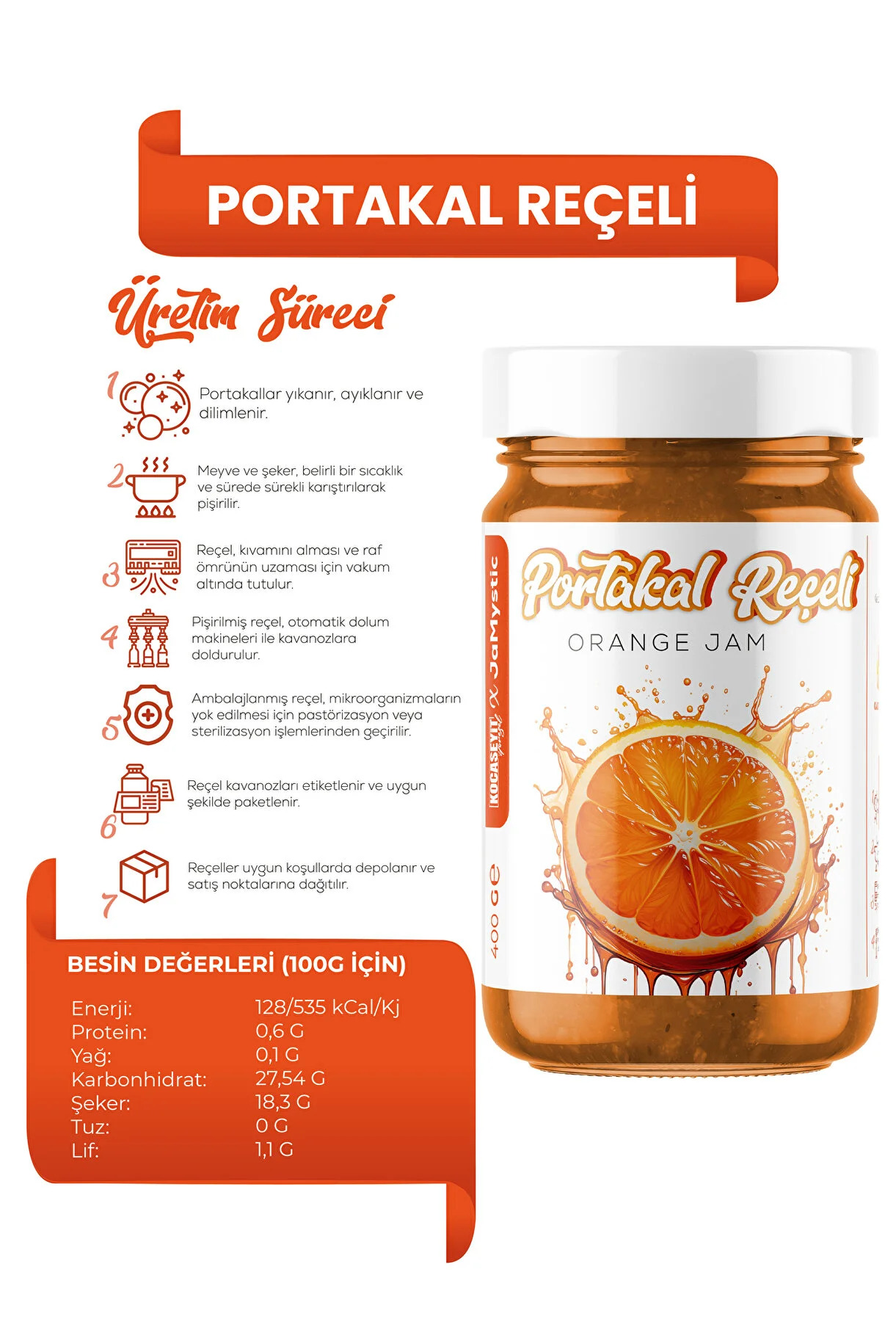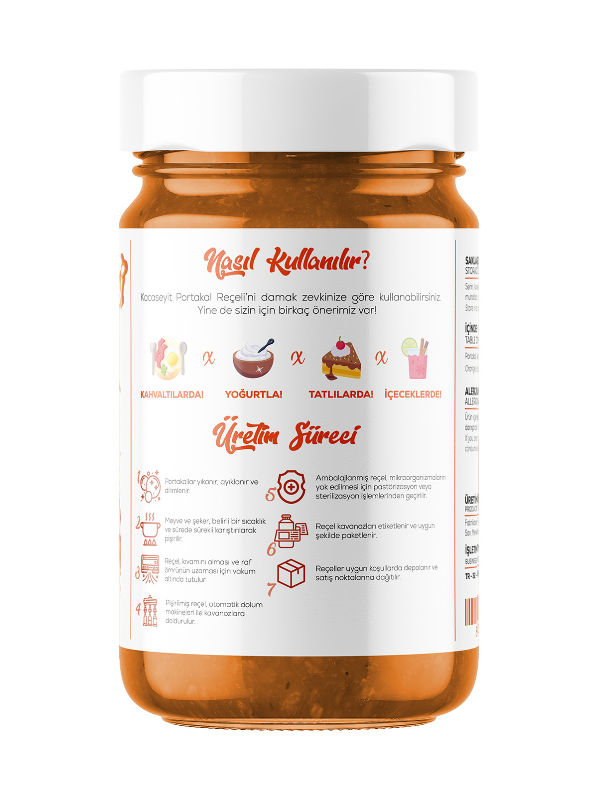 Kocaseyit® Portakal Reçeli – Güneşin Tadını Kahvaltılarınıza Taşıyın Akdeniz’in En Tatlı Tezahürü Kocaseyit Portakal Reçeli, özenle seçilmiş Akdeniz portakal kabuklarının geleneksel yöntemlerle reçele dönüştürülmesiyle hazırlanır. Portakalın kendine özgü aroması ve tadı, bu reçelde aynen korunur. Her kaşıkta güneşin tadını ve Akdeniz’in sıcaklığını hissedersiniz. Doğallığın ve Lezzetin Buluşması Kocaseyit Portakal Reçeli, hiçbir katkı maddesi veya koruyucu içermez. Tamamen doğal içeriğiyle sağlığınızı düşünürken, damaklarınızda unutulmaz bir tat bırakır. Portakalın doğal tatlılığı ve hafif acılığı, bu reçelin vazgeçilmez olmasını sağlar. Kahvaltılara Zindelik Katın Kocaseyit Portakal Reçeli, kahvaltılıklarınızın yanında, çayınızın yanında veya farklı tariflerinizde kullanabileceğiniz çok yönlü bir lezzettir. Özellikle kek, kurabiye ve dondurmalara eşsiz bir aroma katar. Ürün Özellikleri: Tamamen doğal ve katkısız Geleneksel yöntemlerle üretilmiştir Akdeniz’in taze portakal kabuklarının lezzeti C vitamini deposu Uzun süre tazeliğini korur Saklama Koşulları: Serin ve kuru bir yerde, güneş ışığından uzakta saklayınız. Açıldıktan sonra buzdolabında muhafaza ediniz.